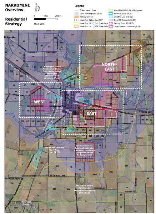 of Narromine) and away from the river and cowals to improve the chance of subdivision proceeding, reduce development cost, and comply with